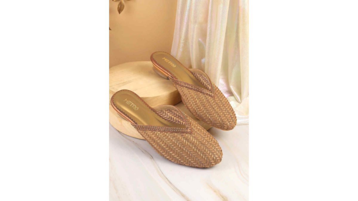मेट्रो ब्रांड की इस मोजड़ी पर काफी बारीकी से काम किया गया है, जो देखने में काफी क्लासी लगती है। गोल्डन रंग में आने वाली यह जूती लाल, हरे रंग के सूट पर काफी जंच सकती है। इस मोजड़ी को आप सूट के अलावा साड़ी और लहंगा के साथ भी पहन सकती है, जो काफी शानदार लगेगी। इस जूती को सिंथेटिक मटेरियल से बनाया गया है, जो काफी मुलायम और आरामदायक रहेगा। सबसे अच्छी बात है कि इस चप्पल को आप आराम से सूखे कपड़े से साफ कर सकती हैं।