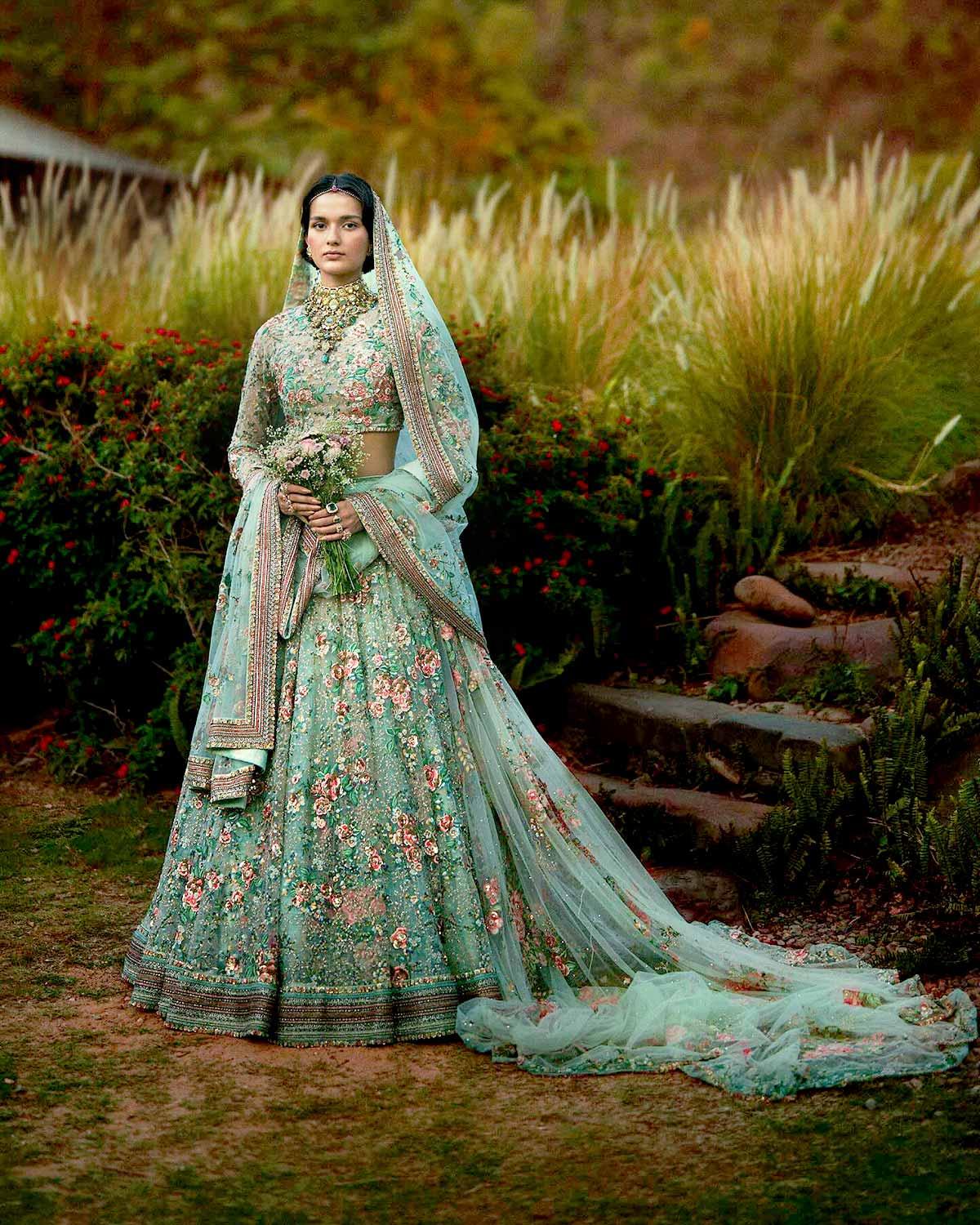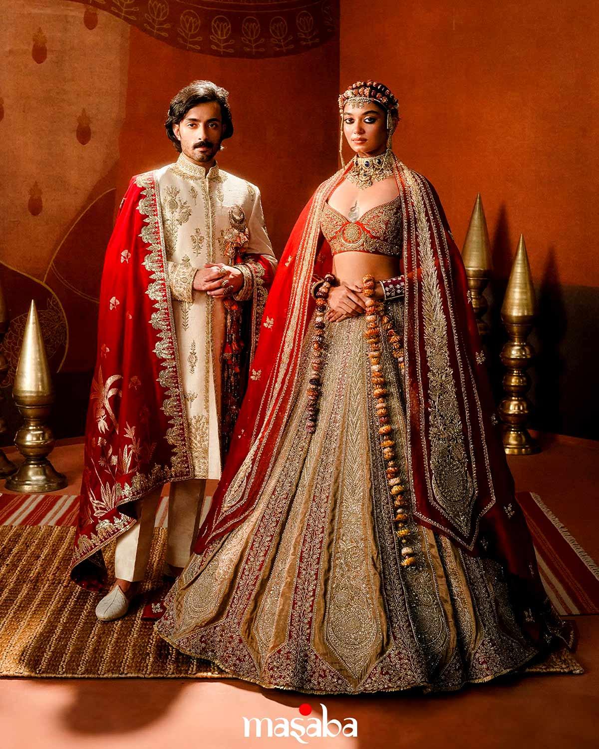 IMAGE: Abu Jani and Sandeep Khosla's label reflects their maximalist design aesthetic; they feature intricate details, luxurious fabrics and traditional elements.